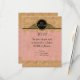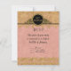 An RSVP Response card for the matching Bat Mitzvah Invites. Elegant and sophisticated grandeur for your special day. This Modern take on a vintage Art Nouveau style could easily grace an English Manor House Style soiree or an formal occasion. Shown here for a Bat Mitzvah celebration, this design is available in these other categories: Birthday party, Anniversaries, Wedding Invitations and Bridal showers. Also available in a range of colours. The background is a soft, aged, subtle damask floral pattern in two shades of blush pink coral. The lace like borders are rendered in a very realistic looking faux gold glitter with twinkle light sparkles. An Art Deco frame with swirl scrolls in black and gold sets off the title of your event. On the reverse side is a beautiful Star of David symbol emblem. The template fields are easy to customise for your own personalised invitation wording.