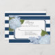 Matching RSVP card that can mix and match with any of the sets in this collection.  Free envelopes are included for your guests to return their responses.  Have you loved summer blue hydrangeas all your life?  Do they remind you of a summer romance, the beauty of the garden where you're going to be married?  Love timeless, pretty flowers paired with bold, simple and modern design?  We had you in mind when we created this silver touched, faux glitter shimmering modern wide striped background in bold navy blue with a white stripe that you can change out using the colour picker tool under "customise."  For a touch of elegance an Art Deco styled notched corner frame border is in silver, white and navy and is layered over the contemporary stripe.  Artwork that was hand painted in oil pastels by Audrey Jeanne Roberts is layered over the top of all.  A soft, impressionist style, loose painterly soft blue hydrangea floral cluster has a vintage feel - but is new art.  Romantic.  Simple.  Trending. A complete wedding invitation set is available to match.  Art copyright Audrey Jeanne Roberts, all rights reserved.