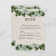 RSVP wedding response card RSVP Irish linen and shamrocks. Image and illustration composition for elegant formal wedding, anniversary or engagement party template The text is fully customisable. Add your information or change it completely. Select a different font and colour. Template can be used for any special occasion. Simply change the text to suit your needs.Vow renewal