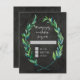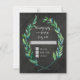 Chalkboard style background. Matching RSVP Response Card to mail back to the bride (includes free white envelopes). Timeless. Simple. Modern. Show on Kraft style paper for the perfect green style wedding invite. Lovely for a wedding in a lush garden setting in the spring or summer with foliage and greenery as the backdrop and reception theme. For eco conscious couples that want a green colour palette for their wedding decor, and nature as their focus, these hand painted in watercolor leaves wrap around your invitation text with an elegant simplicity. Entwined like your hearts - and your families. Use for a rustic country barn setting, a backyard setting under the trees, or a farm or park venue. A complete wedding invitation set and collection are available to match.