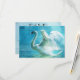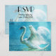 An enchanting and captivating wedding response card. A charming, magical and absolutely wonderful image of a white swan. Flapping and fluttering its wings and enjoying a light summer rain shower. The background and overall tone is a beautiful turquoise blue. Rejuvenating and refreshing. The image has an enchanting fantasy quality to it.