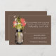 Matching RSVP card perfect for a country style wedding for your Mason Jar theme! Perfect for a country style Bridal Shower or maybe you just love Mason Jars! Mason Jar hanging on a hook filled with country wildflowers. A Chocolate Brown (04:11) background against the hanging Mason Jar and wildflowers in colours of Greens, Coral and Ivory. If you have any questions on this design or want a colour change please email me paula@labellarue.com Also check for the Wedding Suite, INVITATION, RSVP, RECEPTION and GUEST SEATING Cards to match!