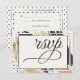 RSVP | Modern Paint Strokes and Typography | Beautiful Typography sets off this modern Wedding Invitation Suite - plum-black and gold abstract paint strokes and plum-black and gold dots behind the centre text frame that has all your customisable wedding information - - Design by BarefootBride™