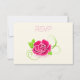 An elegant and chic rsvp card. A simple illustration of a pink rose with green petals and a swirly stem.