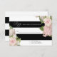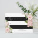 Matching RSVP Response Card to return to the bride. The perfect blend of romance and modern sleek elegance for an elegant, unique and beautiful wedding invitation collection. This artwork was hand painted in oil pastels by Audrey Jeanne Roberts and is layered over the top of modern wide striped black and white stripes background. A soft, impressionist style, loose painterly floral cluster with pink and white hydrangea blossoms and assorted roses and rose buds with a soft mint green grey succulent leaf for a modern touch. Romantic. Simple. Trendy. A complete wedding invitation and reception decor product set is available to match. Art copyright Audrey Jeanne Roberts, all rights reserved.