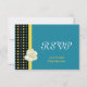 RSVP, wedding invitation response card, white gardenia and blue, yellow polka dots.