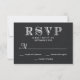 Simple but elegant Wedding RSVP Response cards. Vintage style black dyed burlap sackcloth background with white retro woodcut typography. Perfect for modern rustic country weddings with a sophisticated touch of class. Note: This is a paper card with a PRINTED image of textured canvas burlap for decorative effect. There are no real or raised textures.