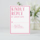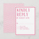 This RSVP Response card coordinates with the wedding invitation suite and is for your guests to fill out and return. Easily customise your information in our simple template. You can custom colour the border, font and background colour pattern using the simple tools provided. Shown in bright, rich pink. Modern, simple styling with a serif, all cap font design.
