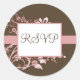 Our Wedding stickers with a chocolate brown and pink floral swirl background. Get the matching postage to complete the look. Also available with monograms, or the names of the bride & groom.
