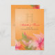 Beautiful contemporary abstract flowers in a bright bold bouquet of tangerine orange, fuschia pink, and Carribean green. Perfect for autumn garden weddings and tropical venues, or spring, summer, fall weddings. Stylish enough for trendy modern brides, but with a touch of traditional class and vintage garden charm. Elegant and affordable custom wedding invites and cards priced for frugal brides on a budget. More casual in style than the coordinating formal version in this wedding set -- makes statment of simple elegance. Shown in basic paper stock -- available in premium quality felt, linen, recycled, and metallic options. Customise it to change the font colours and styles. Please contact us if you would like this design modified to match your bridal party colour theme. Matching invitations, postage, and complete wedding packets available.