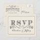 Simple but elegant Wedding RSVP Response economical post cards. Vintage style antique vellum white with Victorian floral motif and retro typography. Perfect for modern, rustic country weddings with a romantic sophisticated touch of class. Note: This is a paper card with a PRINTED image of parchment for decorative effect. Matching invitations and coordinating stationery accessories set available.