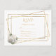 A White and gold RSVP card with White and Gold Glam Roses.