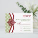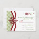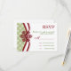 RSVP Winter Wedding Cranberry Light Sage. Printed Cranberry snowflake with ribbon with a light sage and white snowflakes background. Great colour combination which coordinates with the winter wedding invitations. These RSVP winter wedding invites may also be used to RSVP a winter holiday party, Christmas Party RSVP or corporate holiday party.
