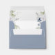 Beautiful dusty blue wedding RSVP envelope with printed return address coordinating our "Elegant Bliss" wedding RSVP cards. NOTES: 1) the default "A2" envelope size selected fits our coordinating 3.5" x 5" RSVP card size, if you make changes on the RSVP card size, please make sure to select the correct RSVP envelope size (see each envelope size measurements explained on product page bottom left area), 2) Option to choose paper type from basic paper or linen. Envelope design with your RSVP return address information along with delicate "Kindly deliver to:" phrase in modern hand written calligraphy on the front. Inside with elegant watercolor greenery and white and blue flowers. Part of our "Elegant Bliss" collection with a variety of coordinating products available including RSVP with and without meal option choices. Also available in beige, navy and white.