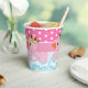 You're going to love these adorable birthday party paper cups featuring three pink rubber ducks all in a row! Each is wearing a crown and a necklace, sitting in bubbles! Pink and white with polka dots for some added fun complete the design.