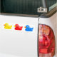 Cute cartoon illustration of three different coloured ducks floating together in a row. Image available on various gifts and products.