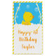 This cute and fun gift bag can be personalised with a name or title, such as son, grandson, nephew, friend etc. It features an adorable yellow duck in white soapy bath bubbles on a bright blue background with an orange ribbon and yellow stripes. The text combines handwritten script and sans serif fonts for a stylish and modern look.