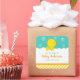 This cute and fun bookplate features an adorable yellow duck in white soapy bath bubbles on a bright green background with an orange ribbon and yellow stripes. The text combines handwritten script and sans serif fonts for a stylish and modern look. This is perfect for a Baby Shower.