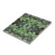 On this small Ceramic Tile - Lose yourself in the depths of this green wonderland, a pattern made from an original photograph by HomeWare of a rubber tree. The closeup photo has been repeated to form layers of leaves, creating mysterious depth in this lush, tropical design. The leaves are shiny and smooth, in natural shades of green, from a lighter, yellow green in the sunlight to a deeper green in the shadows. Their light yellow green stems add a linear pattern to the photo design.