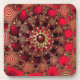 A sparkling fractal design with ornate spirals of dark and vivid red, overlaid with gold filigree like metallic seashells and studded with glittering rubies.