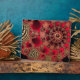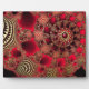 A sparkling fractal design with ornate spirals of dark and vivid red, overlaid with gold filigree like metallic seashells and studded with glittering rubies.