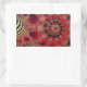 A sparkling fractal design with ornate spirals of dark and vivid red, overlaid with gold filigree like metallic seashells and studded with glittering rubies.