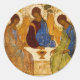 Antique Andrei Rublev artwork/icon depicting the Father, Son, and Holy Ghost seated at a table. The images appear to have angel wings.