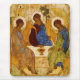 Antique Andrei Rublev artwork/icon depicting the Father, Son, and Holy Ghost seated at a table. The images appear to have angel wings.