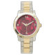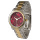 Gold and silver tone watch with an image of a dazzling deep red ruby. Optional gold clock face. See matching round button, round charm, drop earrings, large round premium metal keychain, round double-sided acrylic keychain, swirl metal keychain and round necklace. See the entire Gemstones & Medallions Watch collection in the ACCESSORIES section.