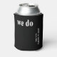 Modern black wedding can coolers featuring a simple and minimal design with "we do" in bold contemporary typography. The colour of the fonts may be changed to any colours you choose in the design editing tool. These can coolers are great for a wedding reception, engagement party or bridal shower.