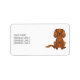 Destei's original cartoon illustration of a cute ruby colour Cavalier King Charles Spaniel breed dog who is sitting. Next to the dog there is a personalizable text area.