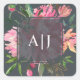 Ruby Pink Peony Floral Botanical Monogram Square Sticker