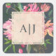 Ruby Pink Peony Floral Botanical Monogram Square Sticker