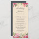 Ruby Pink Peony Floral Ivory Wedding Menu