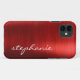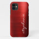 This trendy phone case features a ruby red faux brushed metal foil background. Personalise it with your name in white handwriting-style brush script.