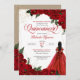 Ruby Red Floral Rose & Gold Elegant Quinceañera Invitation