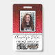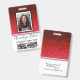 Faux ruby red and black glitter sparkles delightfully behind a photo template with black and white frame. Easily update the name and professional job title for each custom employee badge. There is also space for a company logo—delete to leave blank. Backside features more faux glitter and an image template perfect for employee bar codes. Available in many other styles and colours.