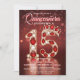 This Quinceañera invitation radiates elegance with its rich crimson hue and shimmering gold accents. A dazzling "15," meticulously crafted from radiant red gemstones and lustrous pearls, takes centre stage. A regal golden crown, encrusted with more brilliant red jewels, gracefully adorns the "5," symbolising her momentous transition. The opulent red background, softly blurred with a bokeh effect, sets a luxurious tone. The celebrant's name is elegantly scripted, adding a personalised flourish to this truly sparkling design.