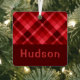 A monogrammed square metal Christmas tree ornament featuring a beautiful diagonal plaid pattern design in ruby red. Create the perfect customised gift by clicking the “personalised” button to add a name or custom message in the provided template field. Select the “Edit using Design Tool” link to change the font, text size and more.