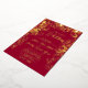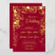 Elegant ruby red and real gold foil abstract floral wedding invitation. All wording can be personalised and the ruby red background colour can be changed to another colour.