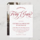 Elegant red 40th wedding anniversary dinner invitation in white with red fonts. 40th wedding anniversary invitation with red fonts against a white background. Forty Years in a swirly red script. Add a photo of the happy couple celebrating their 40th wedding anniversary on the back of the white and red invitation.