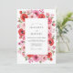 This design features a vibrant array of watercolor roses and peonies in shades of pink and ruby red. The lush botanical arrangement creates a romantic and energetic atmosphere, perfect for a sunny seasonal event. Deep green foliage provides a natural contrast to the warm, blossoming petals, resulting in a sophisticated aesthetic.