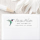Return address label featuring a Ruby-throated Hummingbird on a white background. Personalise it by adding your name and address. The font style, size and colour can be changed by clicking on "customise further".