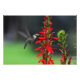 Female Ruby Throated Hummingbird stopping at a Red Lobelia plant for some nourishment.
