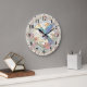 "hummingbird bird clock", "blue humming bird", "red flowers floral wall clock", "stained glass style art", "stain glass flowery nature", "beautiful animals in flight", "pretty flying spread wings",