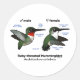 This fun design features our original Birdorable Ruby-throated Hummingbird in both male and female form. The birds are shown with statistics like size and field marks pointed out. This is cute for anyone that loves Archilochus colubris, the Ruby-throated Hummingbird!