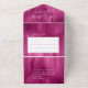 Ruby 40th wedding anniversary party with a tear-off RSVP or QR code option. Typographic script on a ruby red pink abstract art background. Simple modern contemporary design, personalize with your own ruby wedding event details, couples name and reply details, website QR code and your favorite photo. This design requires no extra envelopes and has a detachable perforated RSVP or guest can scan your own QR code for super easy replying. Matching anniversary wedding products and other color options and years are available in the store. Original painting and design by SarAH Trett for www.mylittleedenweddings.com
