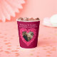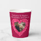 Personalise these bling red ruby wedding anniversary party paper cups with your own 40th anniversary couples names, photo, date and years of marriage. Other matching items are available. Red rubies heart effect graphic art and design by Sarah Trett for www.mylittleeden.com and www.mylittleedenweddings.com
