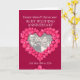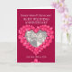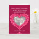 Customise this ruby wedding anniversary card with your parents, photo, year of marriage and inside words. Example reads: Dearest Mum & Dad on your Ruby Wedding Anniversary 25th May 1984 to 2024. Red ruby heart effect art and design by Sarah Trett.