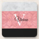Ruddy Pink Batik And Grey Watercolor Monogrammed Coaster